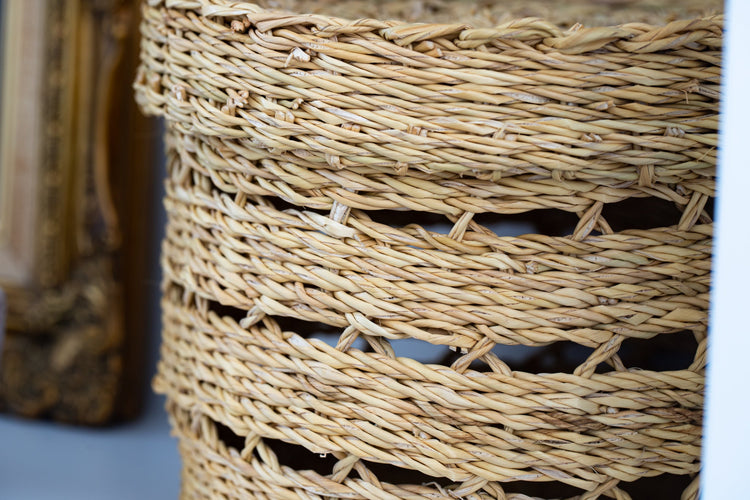 • Intricate, functional, and globally conscious, this basket is perfect for storage and organizing just about anything in your home. They can be used as storage for paper rolls, kids (or dogs!) toys, or as a beautiful focal point in your home office or living room. Our favorite way to use this basket is styled on a bookshelf as art while corralling important or special items.