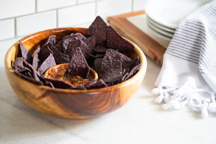 • Elevate your next gathering with this beautifully hand-carved serving set, perfect for serving your favorite chips and dip. Crafted by skilled artisans in Nicaragua using sustainably harvested tropical hardwood, each piece showcases the wood’s rich, natural beauty. It is finished with food-safe linseed oil for a warm, polished look that’s as practical as it is stunning. Whether you're entertaining or gifting, this unique set makes a thoughtful housewarming present or a stylish, functional gift for him—something he'll actually use and appreciate.