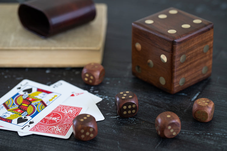 • Enjoy hours of game night fun and entertainment with this small wooden box, hand-carved from Indian Rosewood and shaped and made to look like a large die containing five small wooden dice with gold-painted dots. Great home décor addition to any coffee table or desk or to take along on your travels, in the car or plane! Versatile gender-neutral, unisex gift for yourself or a loved one for birthdays, wedding gifts, showers, gifts for mom or dad, and graduations.